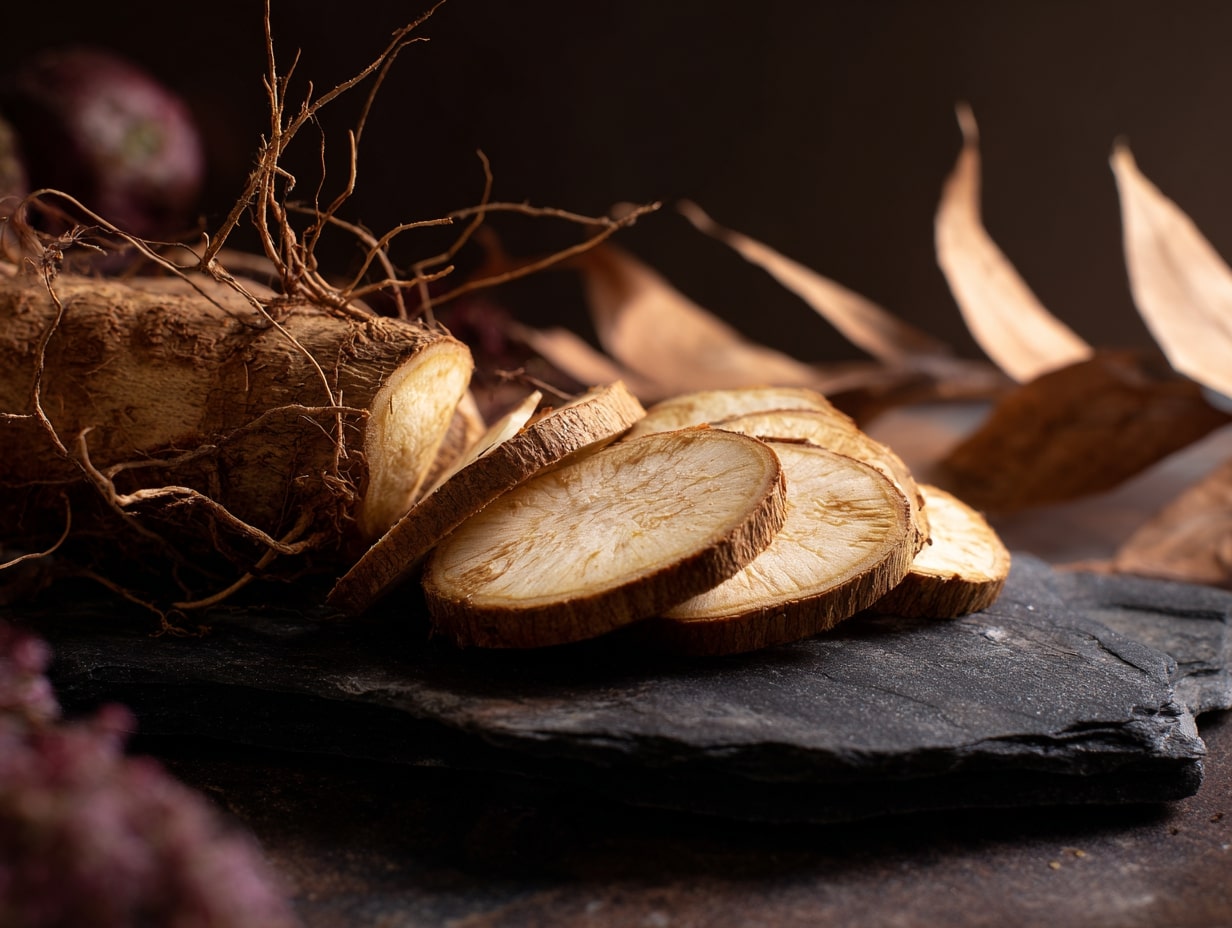 Die Lichtwurzel wird unter den Yamsgewächsen in der TCM besonders hochgeschätzt. Yamswurzeln sind eine uralte traditionelle Medizin für die Hormonbalance der Frau. Eine umfassende Studie konnte nachweisen, dass Yams die Produktion der verschiedenen Estrogenarten in ein Gleichgewicht bringt. So gibt es in der Kategorie des Estrons zwei Arten, die krebserregend sind und drei Arten, die krebshemmend sind. Yams verbessert die Ratio der positiven zu den schädlichen Estron – Untergruppen. Außerdem kann Yams die Produktion and der Gesamtmenge and Estron und Progesteron unterstützen und erzeugt euch eine höhere Sensibilität der Estrogenrezeptoren, was zu einer höheren Effizienz in ihrer Wirkung führt. Diese Wirkungen auf einen ausgeglichenen Hormonhaushalt sind sehr wichtig für die neurologische Gesundheit und eine positive Stimmung bei Frauen.