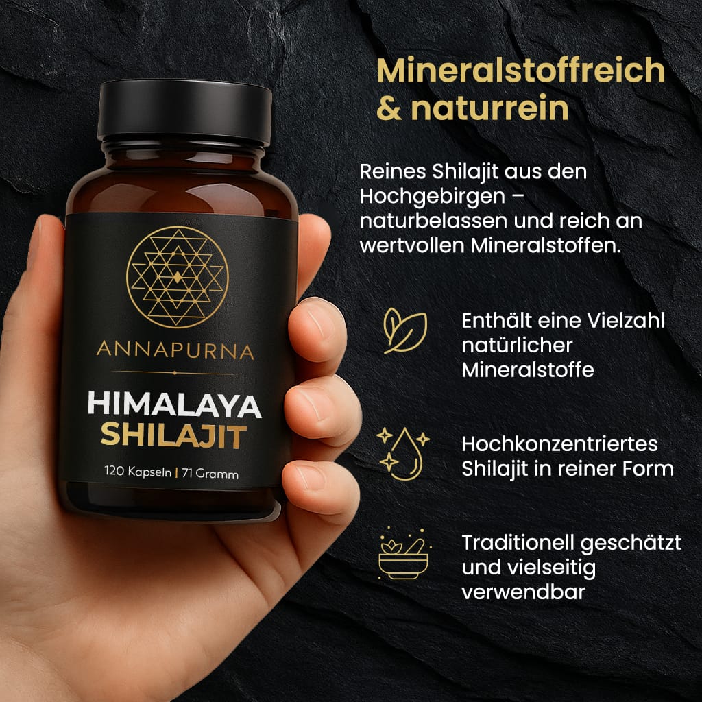 Regulärer Preis €27,92Natürliches, veganes Shilajit aus kontrollierter Herkunft – seit Jahrhunderten in traditionellen Kulturen geschätzt. Eine hochwertige Ergänzung für alle, die bewusst auf ihre Ernährung achten und natürliche Produkte bevorzugen. Die Packung enthält 120 Kapseln – ein Vorrat für zwei Monate.
